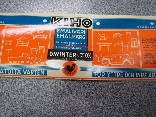 Kiho emaliväri / D. Winter & Co Oy -maalipurkin etikettipainate -kirjapainon arkistokappale