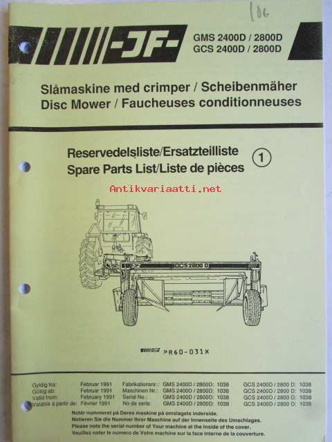 JF GMS 2400D / 2800D GCS 2400D / 2800D Disc Mower, Spare Parts List -Maatalouskone??? (PR60-031X)