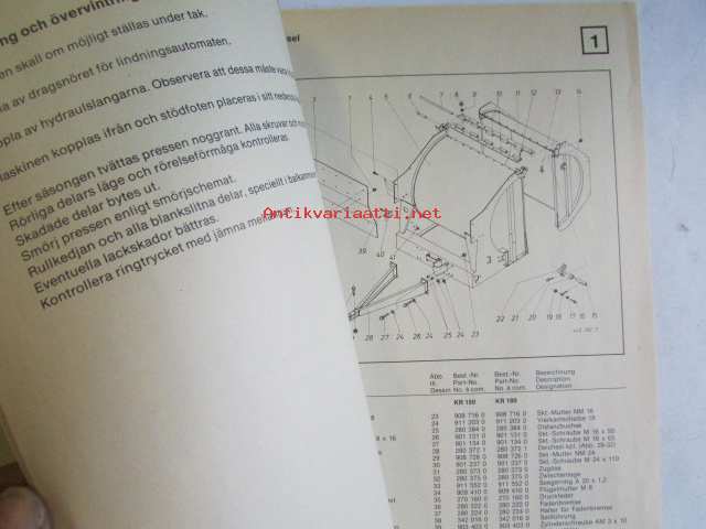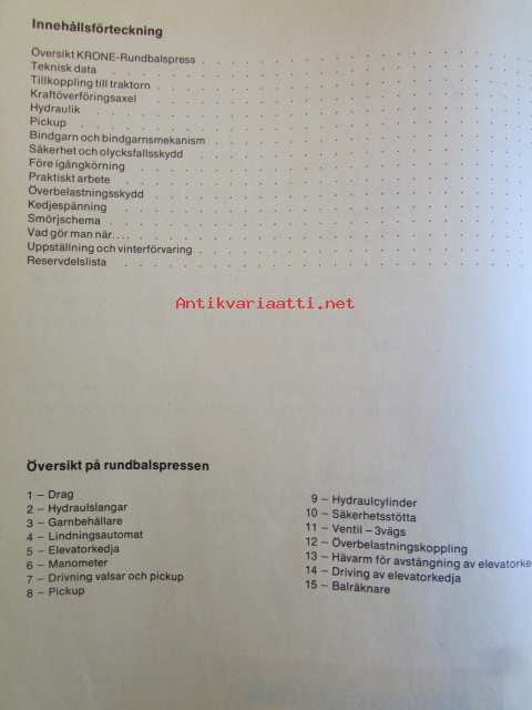 Krone No. 280-4 Instruktionsbok och Reservdelslista rundbalspress - KR 150; fråm maskin-nr 5110 - KR 180; fråm maskin-nr 1060 -Maatalouskone