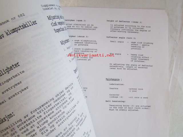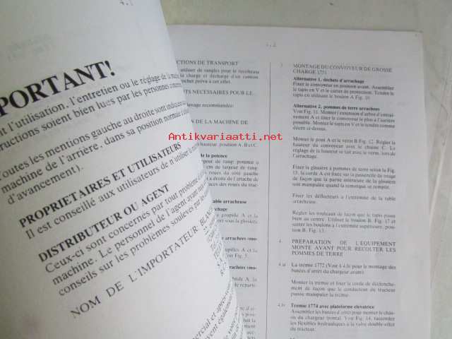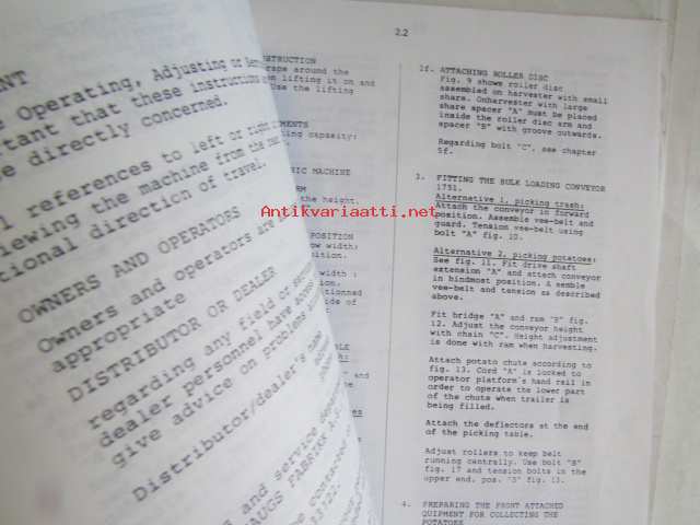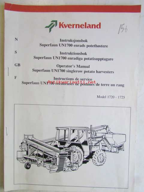 Kvernerland Superfaun UNI1700 Singlerow potato harvester, Operator's Manual, Model 1720 - 1725