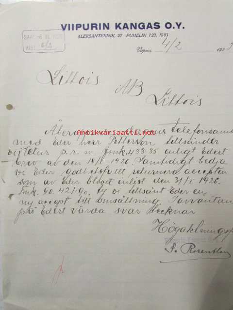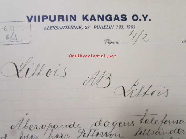 Viipurin Kangas, Viipuri 4/2 1925 -asiakirja