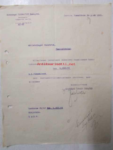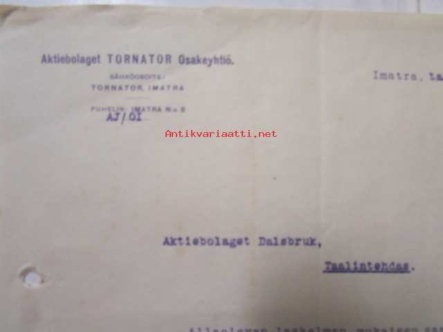 Aktiebolaget Tornator Osakeyhtiö, Imatra tammikuun 24. 1921 -asiakirja