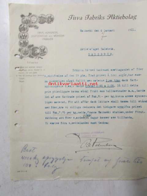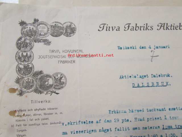 Tirva Fabriks Aktiebolaget, Woikoski 4. januari 1921 -asiakirja