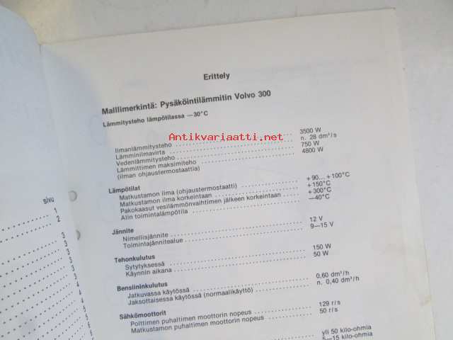 Volvo Huoltokäsikirja Osa 9 (92) Pysäköintilämmitin Volvo 300, -Korjaus ja huolto