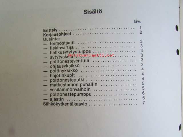 | Saatavilla | 1 kpl | | Sivuja | 6+liite | | Kunto | K2 | | Sidonta/painoasu | Nidottu (pehmeäk.) | | Kielet | Suomi |