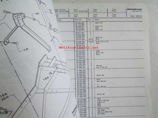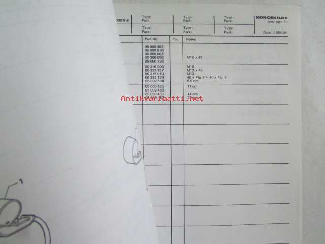 Kongskilde VF4300 spare parts list -varaosaluettelo