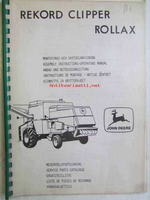 John Deere Record Clipper Rollax -Kiinnitys, käyttöohjeet ja varaosaluettelo