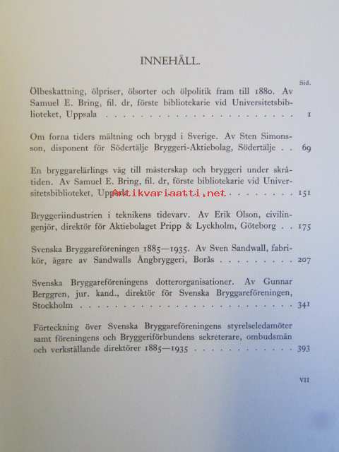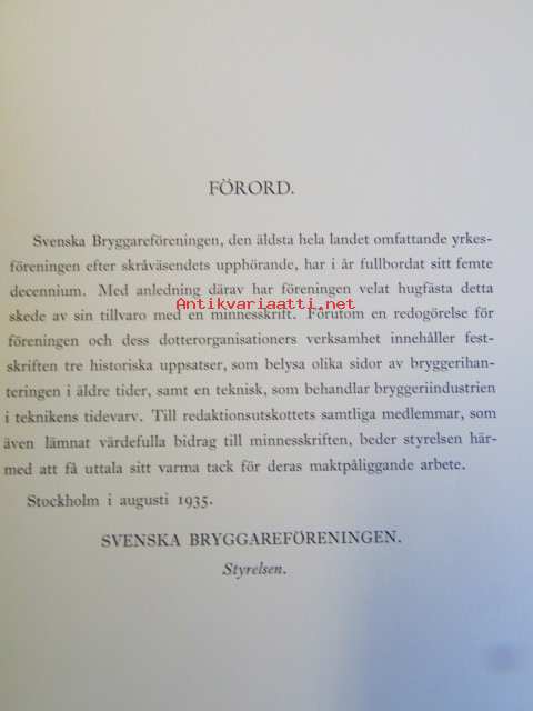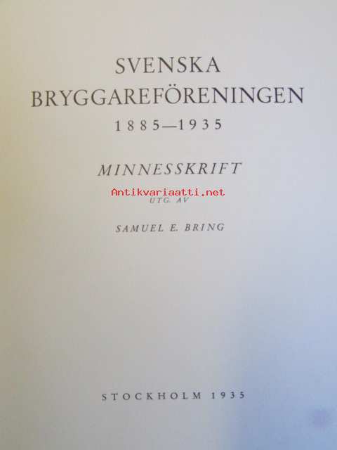 Svenska Bryggare Föreningen 1885 - 1935, Minnesskrift utg. av Samuel E. Bring