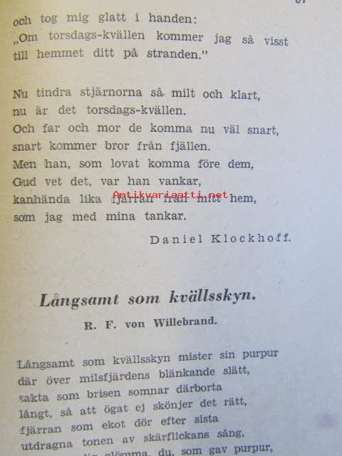 | Saatavilla | 1 kpl | | Julkaisuvuosi | 1939 | | Sivuja | 135 | | Kunto | K3 | | Sidonta/painoasu | Nidottu (pehmeäk.) | | Kielet | Ruotsi |