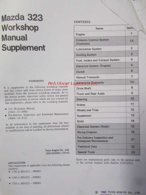Mazda 323 - 1100cc BD1012-800001, 1300cc, BD1032- 800001, 1500cc BD1052-800001, Workshop Manual Supplement