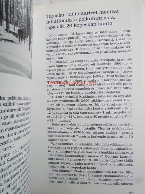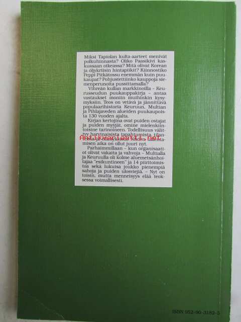 | Saatavilla | 1 kpl | | Julkaisuvuosi | 1984 | | Sivuja | 223 | | Kunto | K2 | | Sidonta/painoasu | Kuvitettu kovakantinen | | ISBN | 952-90-3182-3 | | Kielet | Suomi |