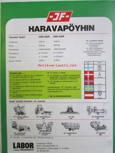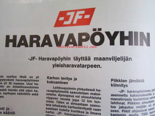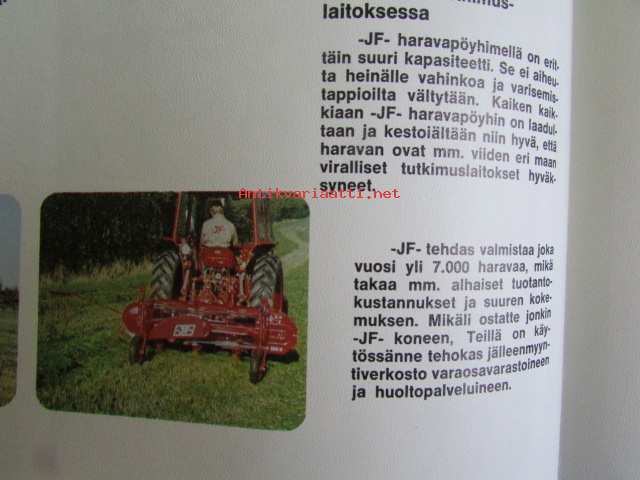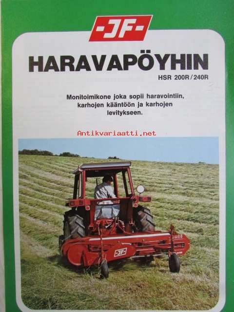 JF Haravapöyhin Monitoimikone joka sopii haravointiin karhojen kääntöön ja karhojen levitykseen -Maatalouskoneen myyntisesite