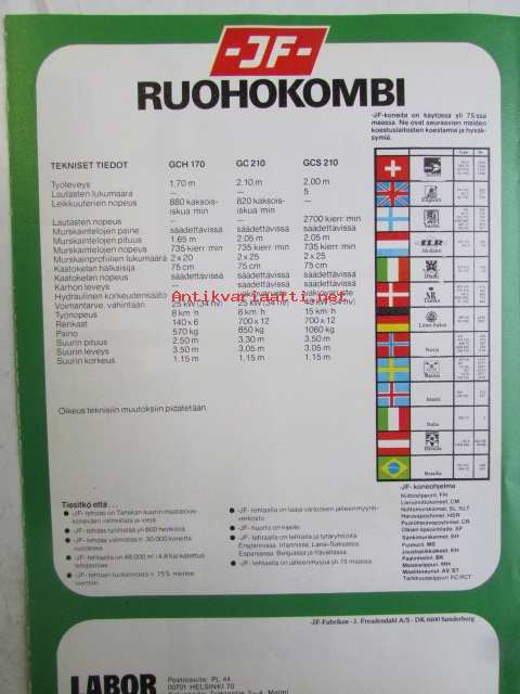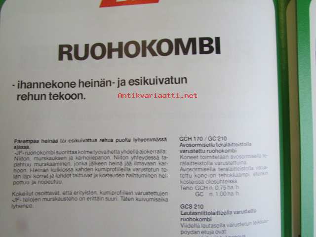 JF Ruohokombi mallit GCH/GC/GCS, Yhdistetty niittokone, korrenmurskain ja karkotin -Maatalouskoneen myyntisesite