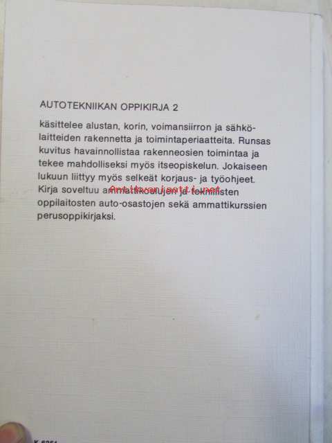 | Saatavilla | 1 kpl | | Julkaisuvuosi | 1978 | | Sivuja | 284 | | Kunto | K2 | | Sidonta/painoasu | Nidottu (pehmeäk.) | | ISBN | 951-0-07171-4 | | Kielet | Suomi |