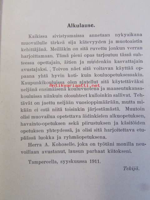 | Saatavilla | 1 kpl | | Julkaisuvuosi | 1911 | | Sivuja | 22+ kuvataulua | | Kunto | K2 | | Sidonta/painoasu | Nidottu (pehmeäk.) | | Kielet | Suomi |