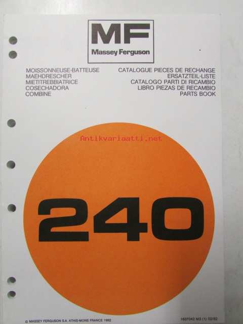 Massey Ferguson 240 Combine Parts book - Leikkuupuimurin varaosakirja, 5 kielen versio