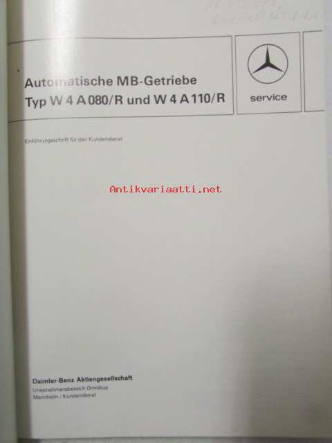 Daimler-Benz Automatische MB-Geriebe Typ W 4 A 080/R und W 4 A 110/R - Vaihteisto korjauskäsikirja