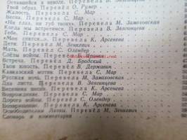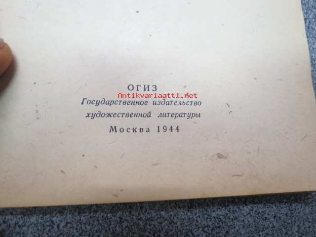 | Saatavilla | 1 kpl | | Julkaisuvuosi | 1944 | | Sivuja | 61 | | Kunto | K3 | | Sidonta/painoasu | Nidottu (pehmeäk.) | | Kielet | Venäjä |