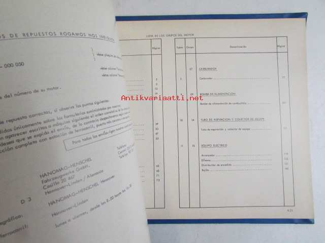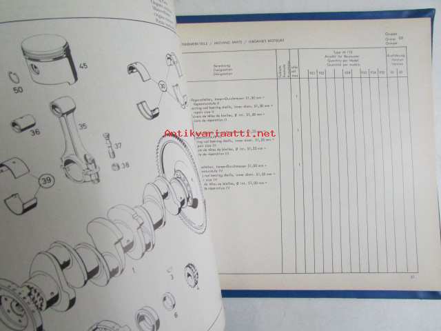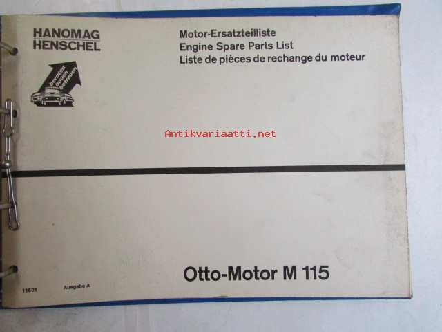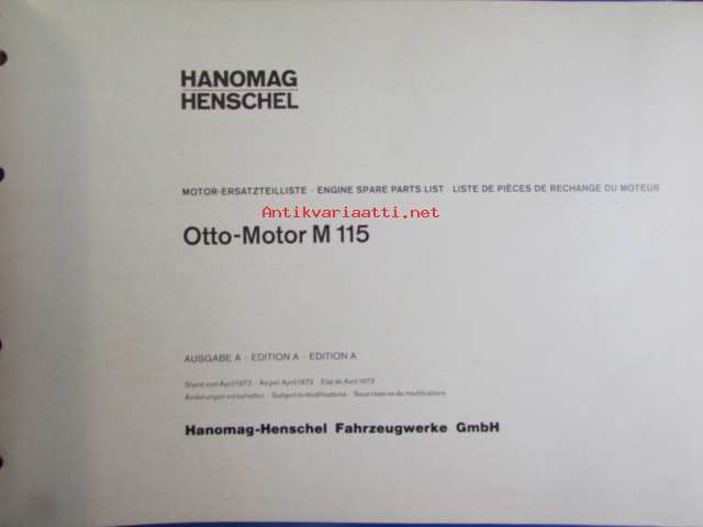 Hanomag Henschel Otto-Motor M 115 Ausbage A, April 1972-varaosakirja, Katso tarkemmat moottori ja mallimerkinnät.