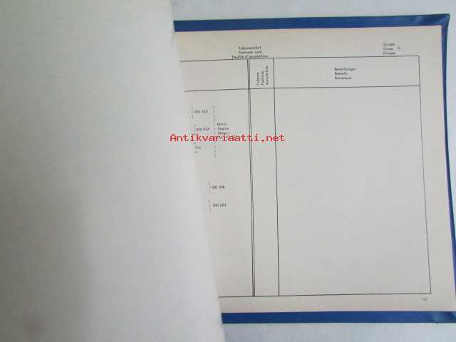 | Saatavilla | 1 kpl | | Julkaisuvuosi | 1972 | | Sivuja | 185 | | Kunto | K2 | | Sidonta/painoasu | Kansio | | Kielet | Saksa, Ranska, Englanti |