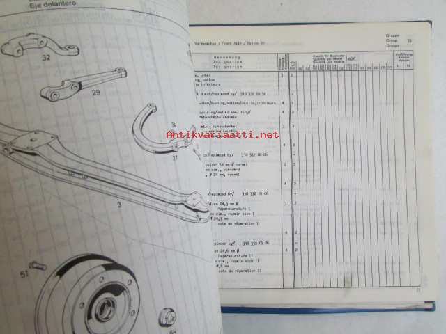 Hanomag Henschel, F40 - Omnibus-Bus - Autobus Kasten - Delivery Vans - Fourgonnettes - Lkw - Trucks - Camions, Ausgabe B 1974-varaosakirja, Katso tarkemmat moottori