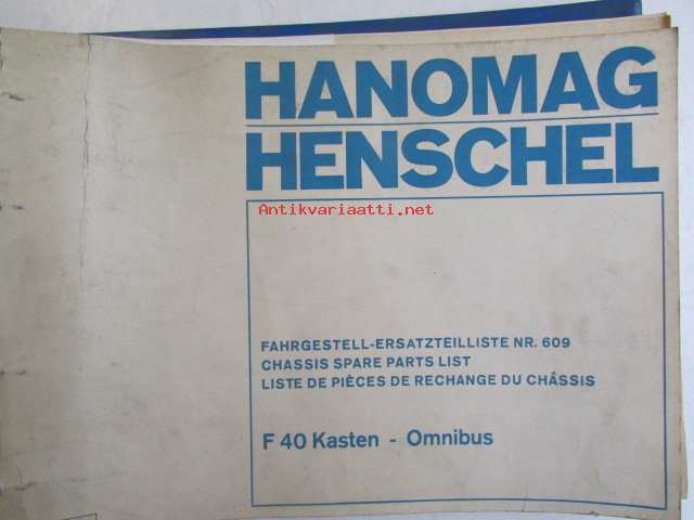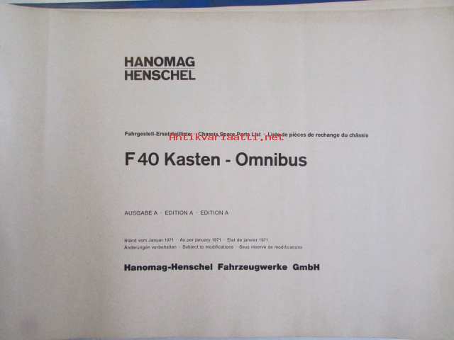 Hanomag Henschel, F40 Kasten - Omnibus, Ausgabe A 1971, -Varaosakirja, Katso tarkemmat moottori ja mallimerkinnät.