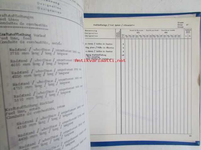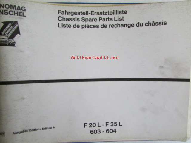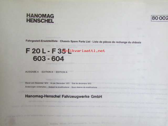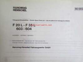 Hanomag Henschel, Chassis F 20 L- F35 L, 603-604, - F46KA-L, Ausgabe A 1972 -Varaosakirja, Katso tarkemmat moottori ja mallimerkinnät.