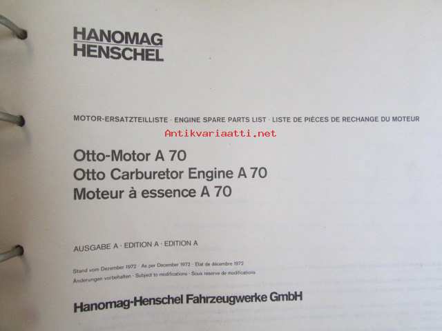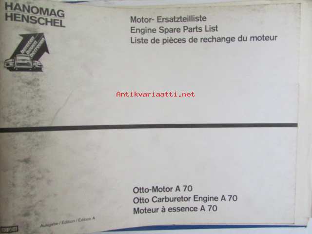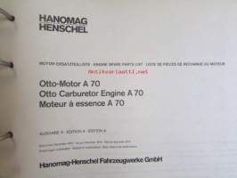 Hanomag Henschel, Engine Otto-Motor A 70, Ausgabe A 1972 -Varaosakirja, Katso tarkemmat moottori ja mallimerkinnät.