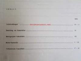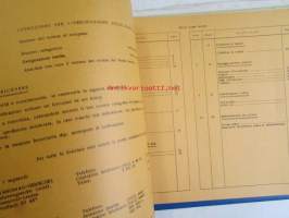 | Saatavilla | 1 kpl | | Julkaisuvuosi | 1972 | | Sivuja | 78 | | Kunto | K2 | | Sidonta/painoasu | Kansio | | Kielet | Saksa, Englanti, Ranska |