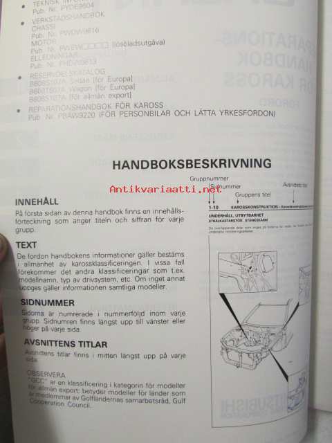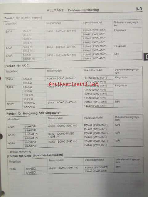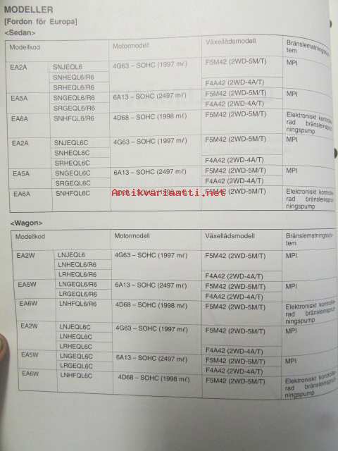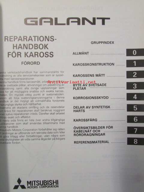 Mitsubishi Galant '97, Reparationshandbok för Kaross -Korjaamokäsikirja