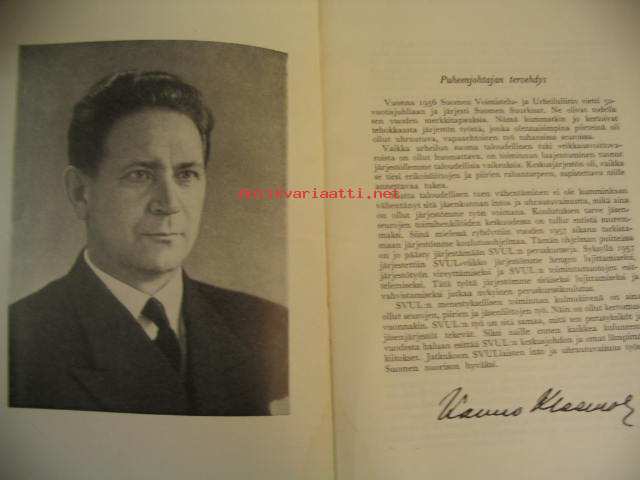 | Saatavilla | 1 kpl | | Julkaisuvuosi | 1957 | | Sivuja | 84 | | Kunto | K3 | | Sidonta/painoasu | Vihko | | Kielet | Suomi |