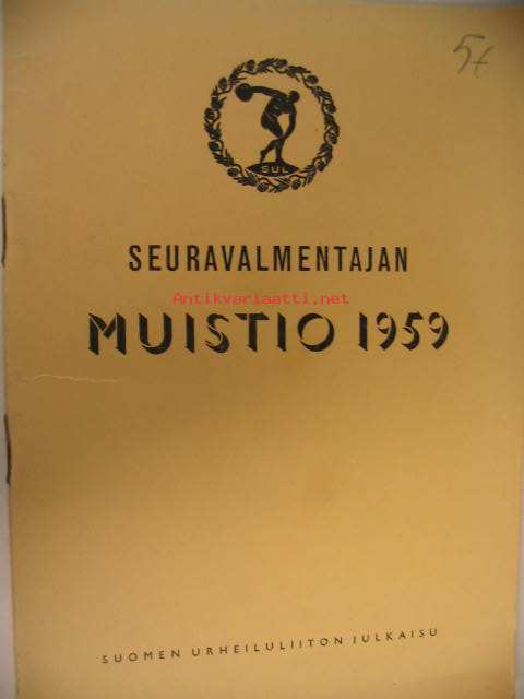 | Saatavilla | 1 kpl | | Julkaisuvuosi | 1959 | | Sivuja | 31 | | Kunto | K3 | | Sidonta/painoasu | Vihko | | Kielet | Suomi |