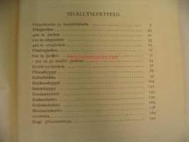 | Saatavilla | 1 kpl | | Julkaisuvuosi | 1937 | | Sivuja | 94 | | Painos | 4. | | Kunto | K3 | | Sidonta/painoasu | Nidottu (pehmeäk.) | | Kielet | Suomi |
