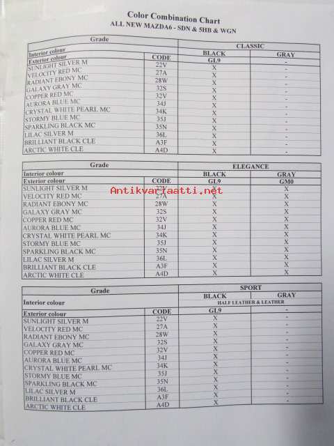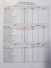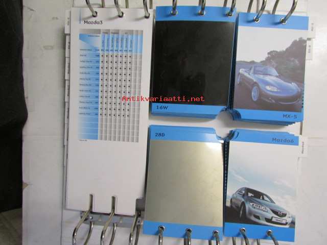 Mazdan malleihin 2, 3, 5, 6, CX-7, MX-5, RX-8, BT-50 Väripaletti mallit ulkovärit, sisävärit ja kankaat -Katso kuvasta tarkemmin.