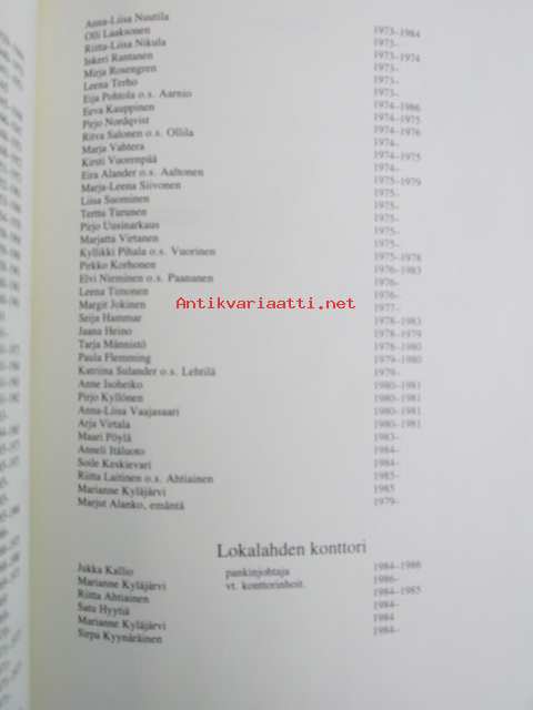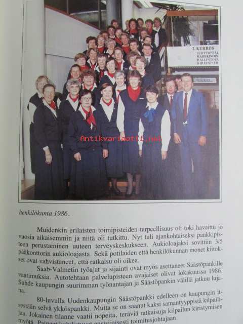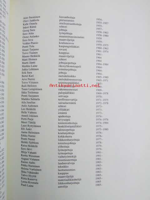 | Saatavilla | 1 kpl | | Julkaisuvuosi | 1987 | | Sivuja | 100 | | Kunto | K2 | | Sidonta/painoasu | Kuvitettu kovakantinen | | ISBN | 951-99841-2-7 | | Kielet | Suomi |