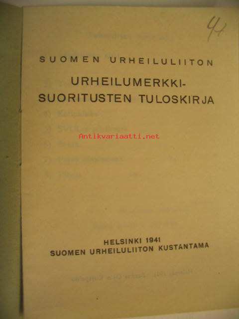| Saatavilla | 1 kpl | | Julkaisuvuosi | 1941 | | Sivuja | 16 | | Kunto | K3 | | Sidonta/painoasu | Vihko | | Kielet | Suomi |