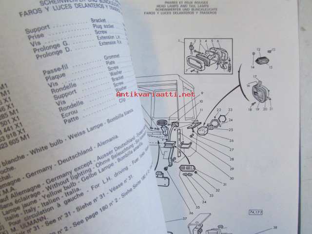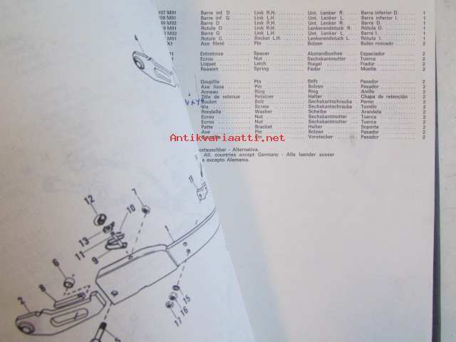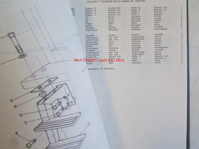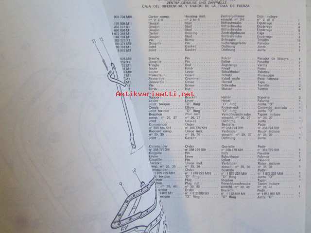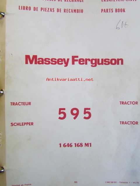 Massey-Ferguson MF 595 Parts Book -varaosaluettelo 4:llä eri kielellä.