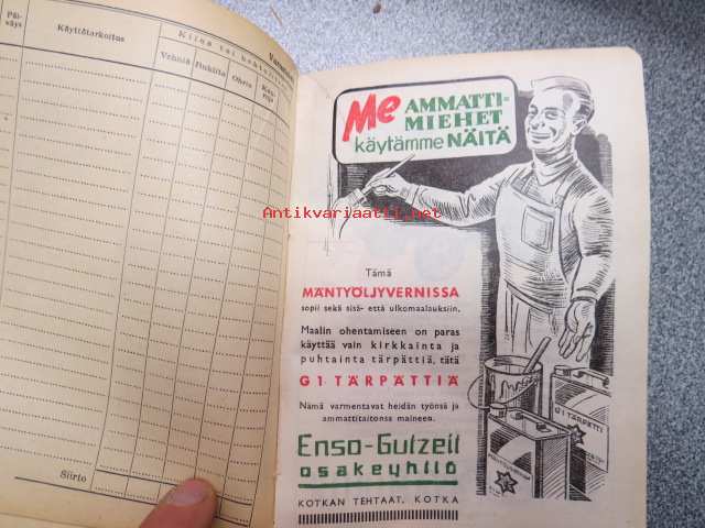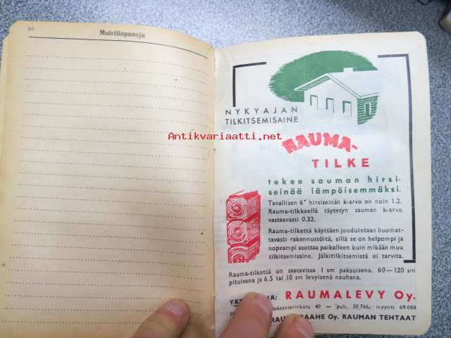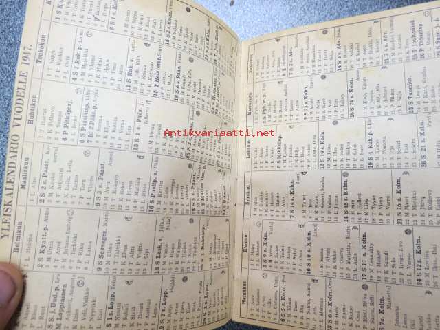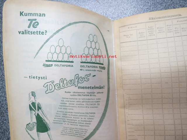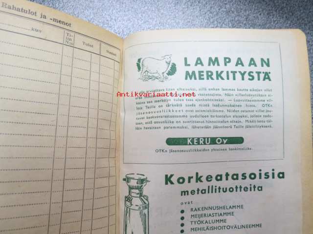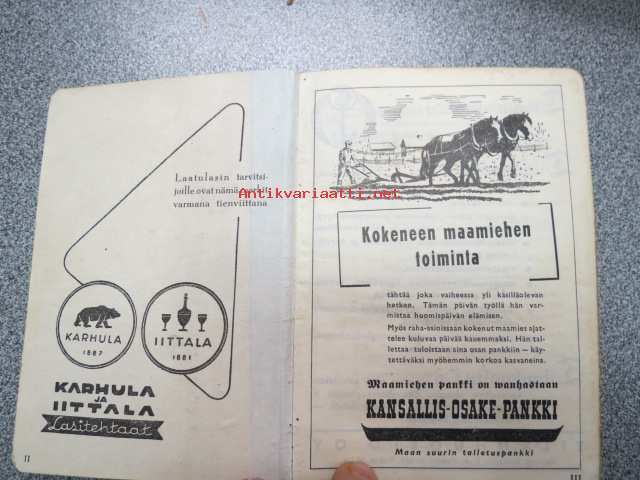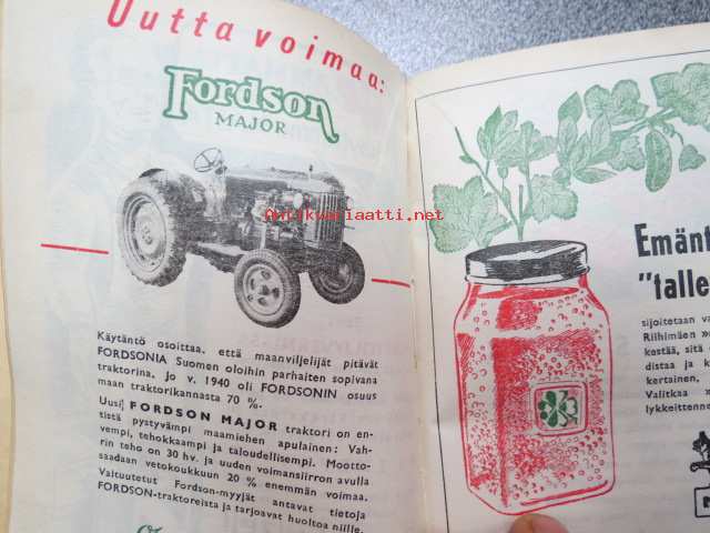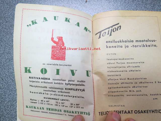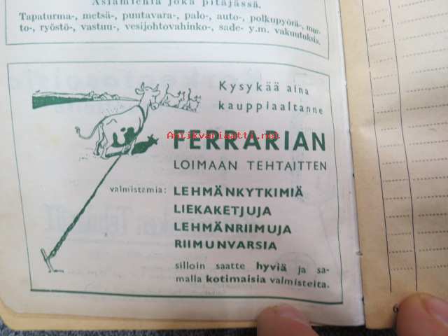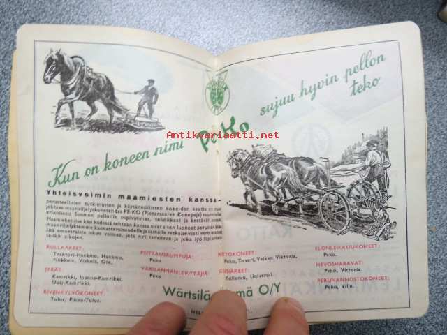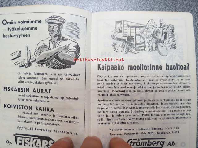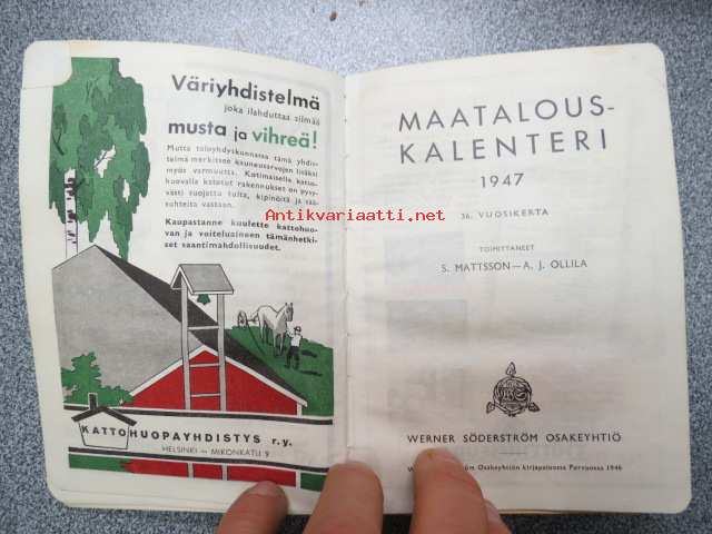 Maatalouskalenteri 1947, runsaasti mainoksia maatalouteen liittyen