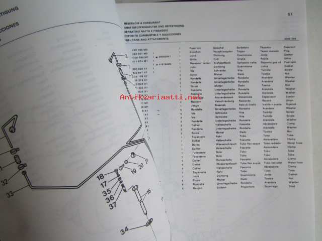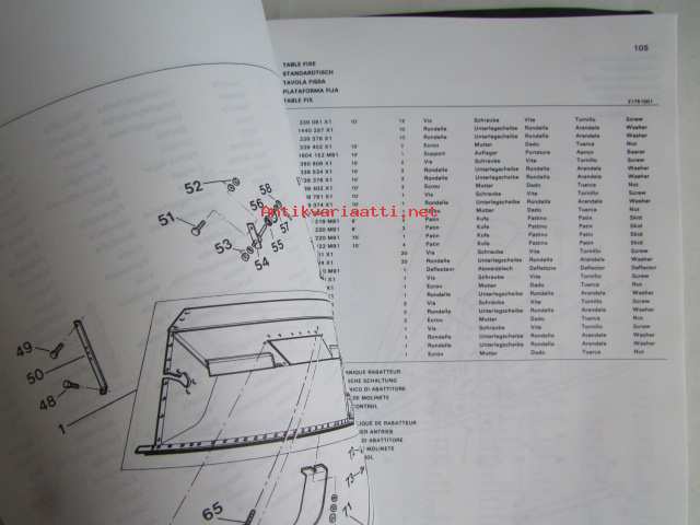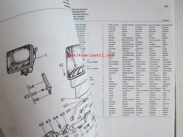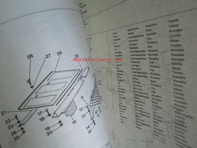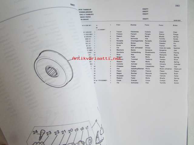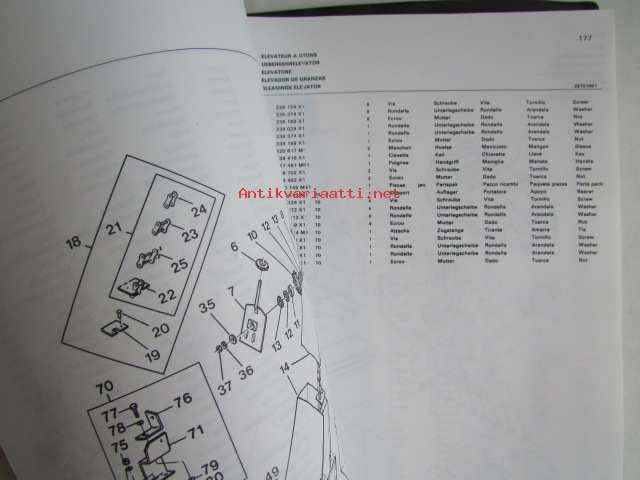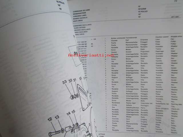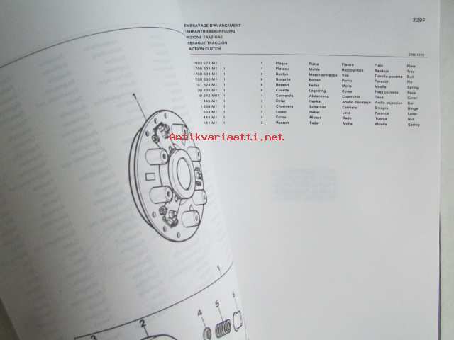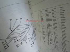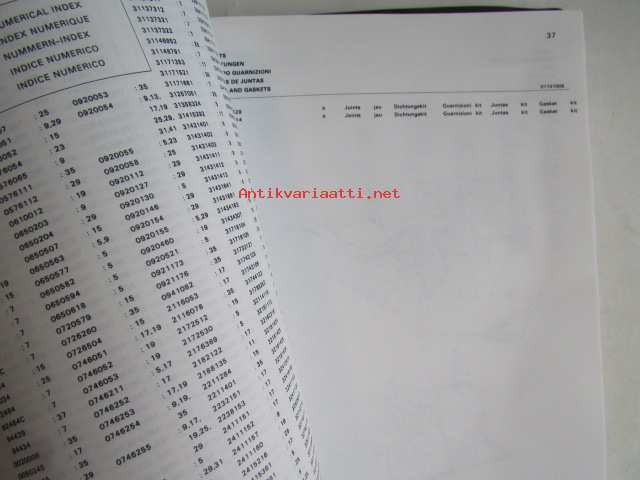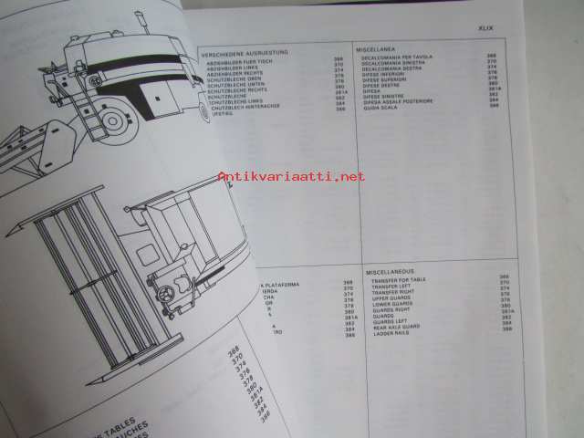 Massey-Ferguson MF 240 Combine -leikkuupuimurin varaosaluettelo / mukana päivitetyt sivut, luettelo alkaa moottorista, kuten muutkin vastaavat luettelot jatkuen normaalisti, mutta siitä puuttu sivut 1-36, joita ei ollut alunperinkään mukana, avasin muovipaketista, joka oli tehtaan jäljiltä.