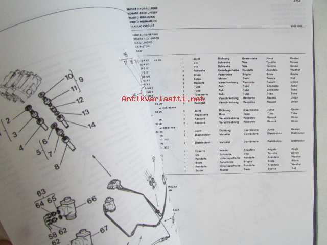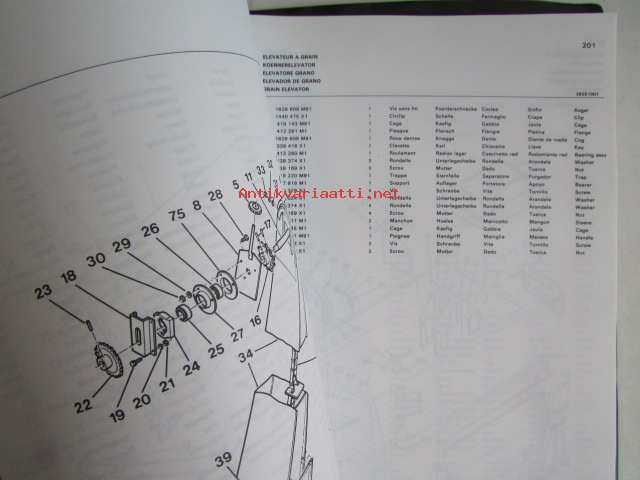 Massey-Ferguson MF 240 Combine -leikkuupuimurin varaosaluettelo / mukana päivitetyt sivut, luettelo alkaa moottorista, kuten muutkin vastaavat luettelot jatkuen