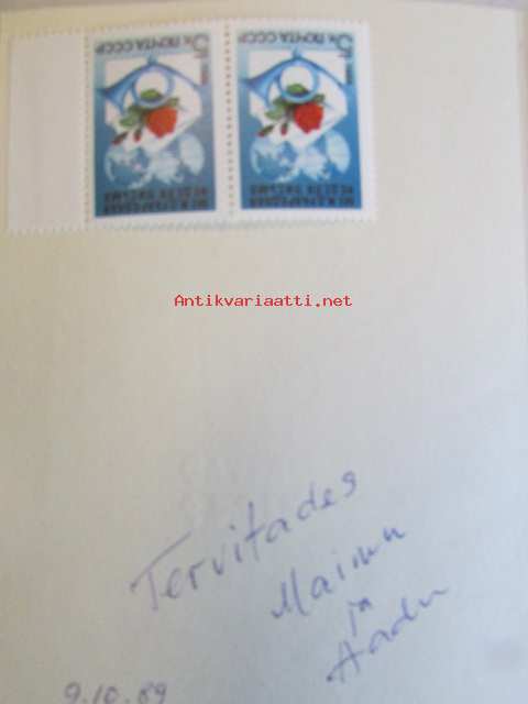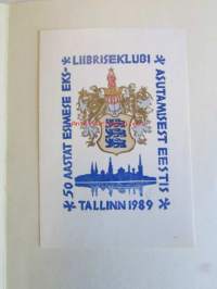 Ex Libris 50 Aastat Esimese Eks Liibrisklubi Asutamisest Eestis Talinn 1989 -kirjanomistajamerkki, Taitettu kortti2 käyttämätöntä CCCP postimerkkiä