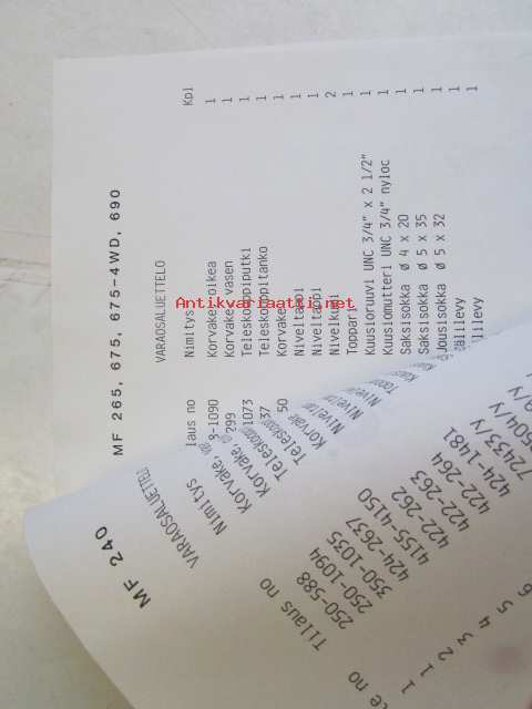 Ylö sivurajoitin MF 240, 265, 675, 675-4WD, 690 -varaosaluettelo