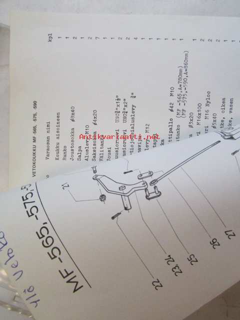 Ylö T-Vetokoukku MF 565, 575, 590 -varaosaluettelo