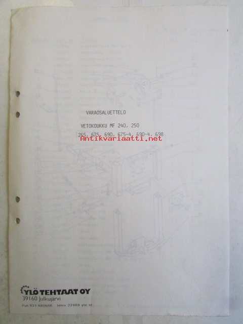 Ylö Vetokoukku MF 240, 250, 265, 675, 690, 675-4, 690-4, 698 -varaosaluettelo