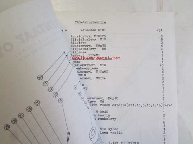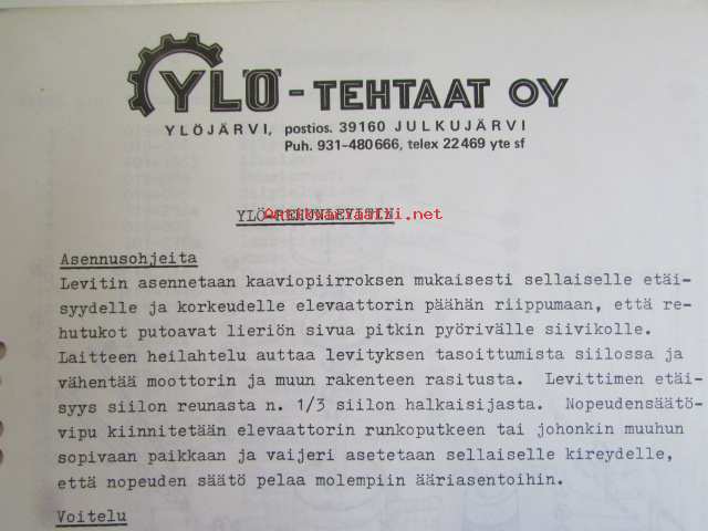 Ylö Rehunlevitin -varaosaluettelo ja Asennus- ja käyttöohje.
