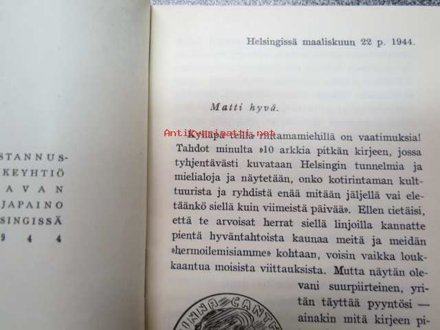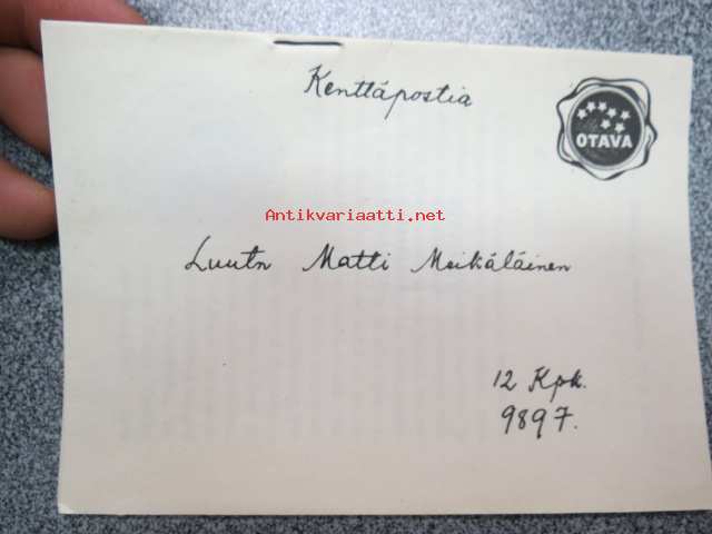 Otava - "Kenttäpostikirje" -mainos rintamalla oleville sotilaille - esittelee kustantajan tuotantoa