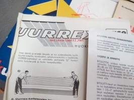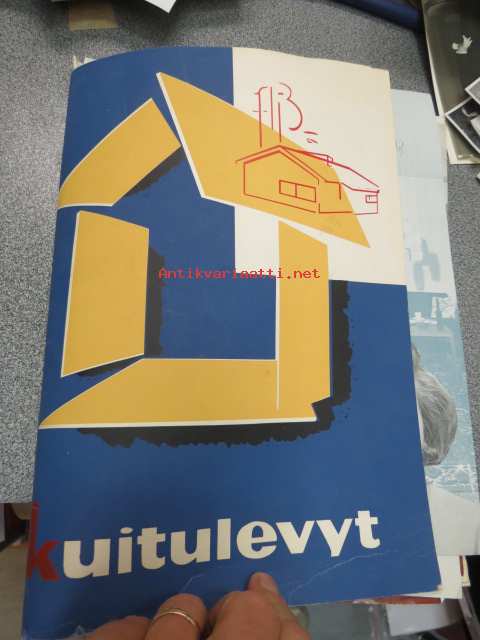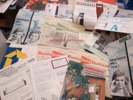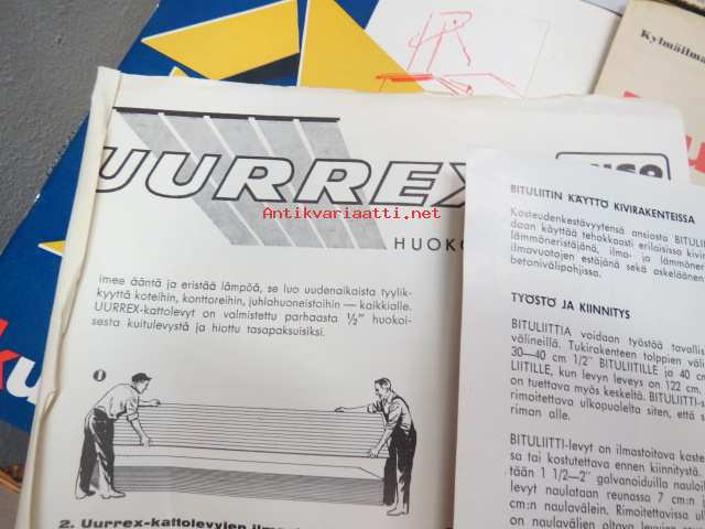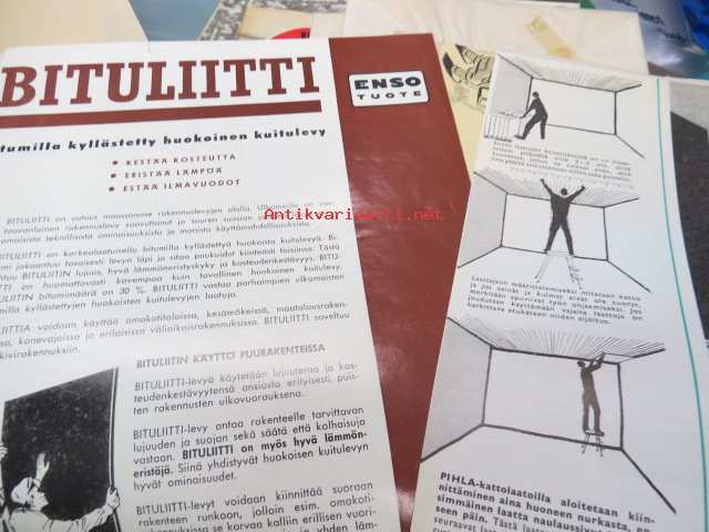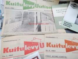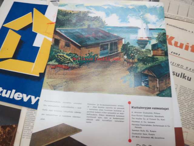 Kuitulevy -esittelykansio, jossa eri tehtaitten erillisiä ja yhteisesitteitä, lehtiä & mainoksia