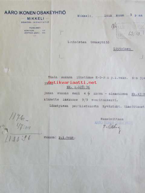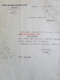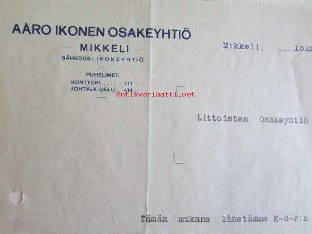 Aaro Ikonen Osakeyhtiö, Mikkeli lokakuun 9. 1922 - asiakirja