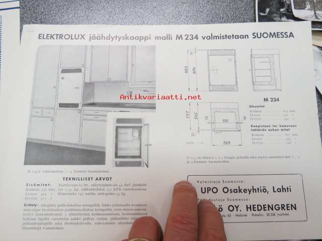 Electrolux jäähdytyskaappi malli M234 (valmistetaan Suomessa) -myyntiesite
