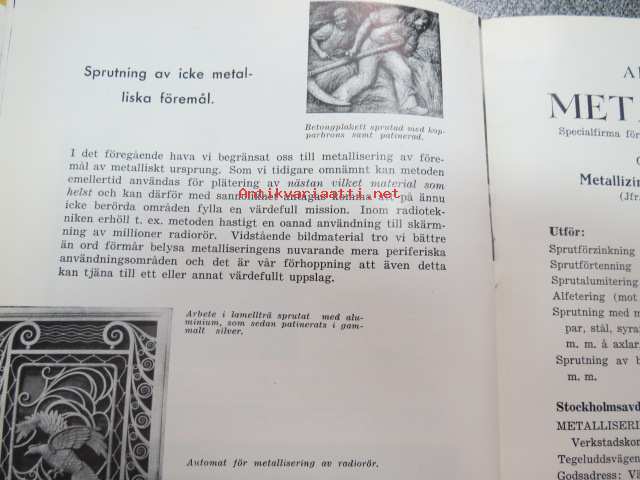 Metallisering -metallipinnoitus- / metallinruiskutusmenetelmä -esite